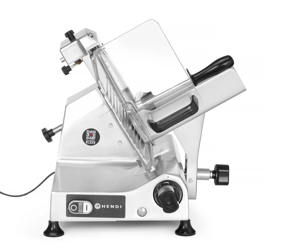 HENDI Řezací stroj je spolehlivý nástroj, který splní očekávání i těch nejnáročnějších uživatelů a zajistí kvalitní krájení a bezpečnou práci. Ideální pro profesionální použití v gastronomii.