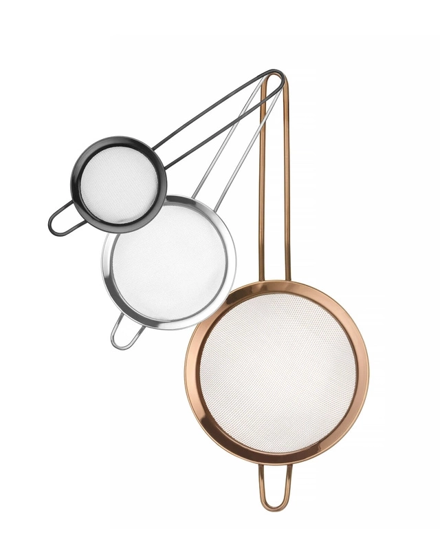 - Všestrannost: Sada obsahuje tři různě velká sítka vhodná pro různé úkoly - cedění, pasírování, přípravu nápojů.