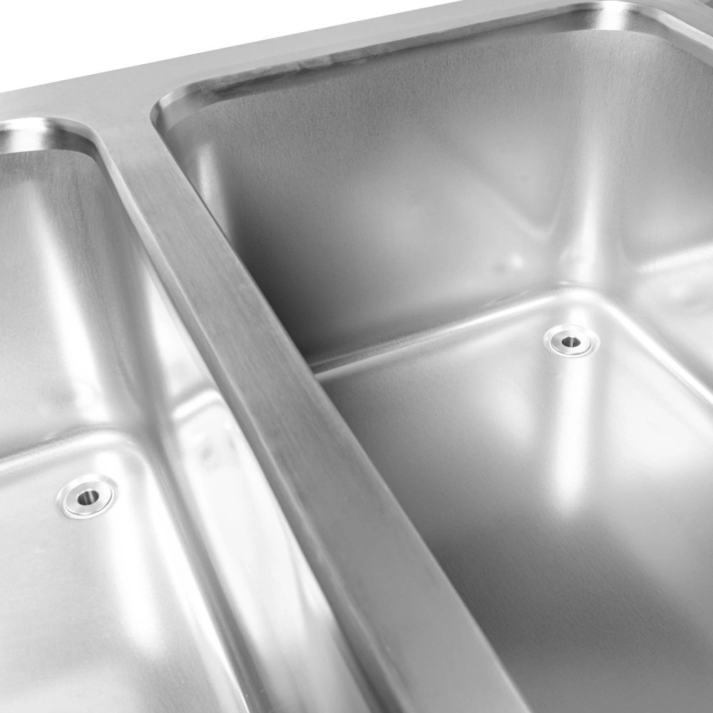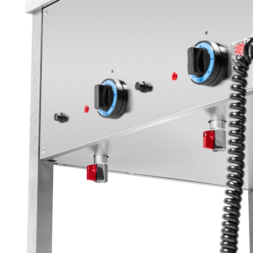 - Robustní konstrukce z nerezové oceli: Zařízení je vyrobeno z vysoce kvalitní nerezové oceli, což zajišťuje odolnost, snadnou údržbu a odolnost proti intenzivnímu používání v profesionální kuchyni. To je obzvláště důležité v provozech s vysokou pracovní zátěží, kde je spolehlivost zařízení klíčová.