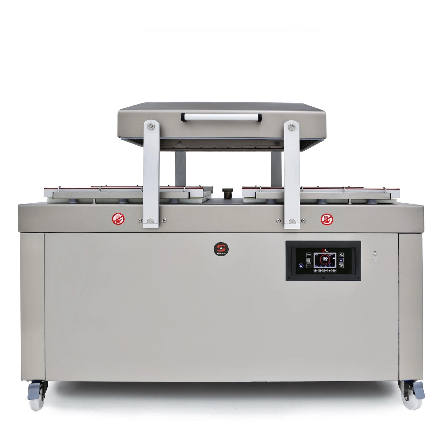 Vakuový balicí stroj SU-6160P od společnosti SAMMIC je moderní stroj pro profesionální gastronomii, ideální pro hermetické balení potravin. Je vybaven dvojitou těsnicí lištou, která zaručuje vzduchotěsné uzavření, a výkonnou vakuovou olejovou pumpou Busch, a umožňuje tak bezpečné balení tekutin, choulostivých výrobků i potravin s vysokým obsahem vody. Díky připojení Bluetooth, portu pro tiskárnu a několika programům pro vytváření vakua je všestranným a spolehlivým nástrojem pro profesionální kuchyně.