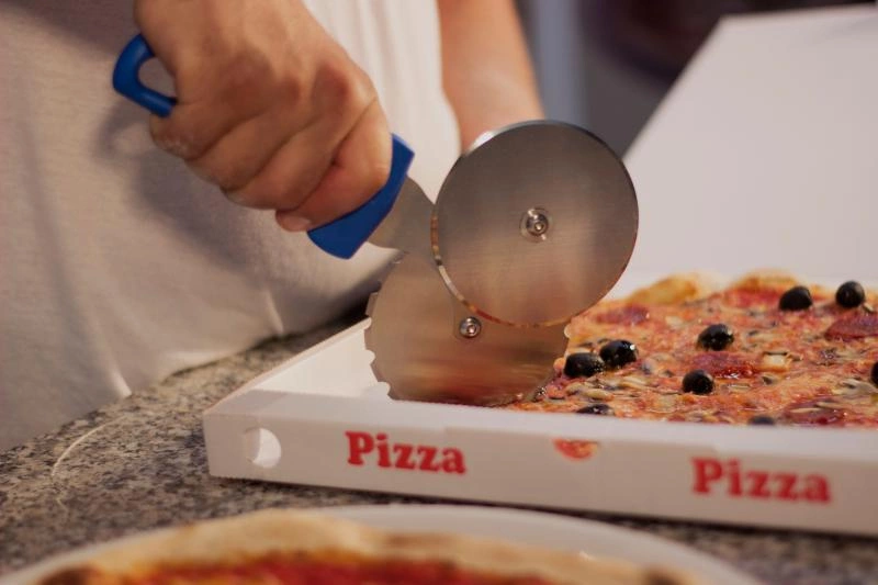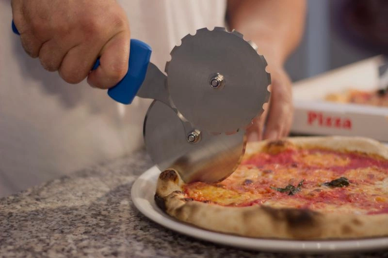 • Dvojité čepele – pro plné krájení a předřezávání: Jedna čepel slouží k přesnému krájení pizzy na porce, druhá umožňuje jemné naříznutí, což usnadňuje transport pizzy bez posouvání ingrediencí.