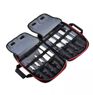 • Pouzdro z odolného materiálu, které umožňuje bezpečné skladování a přepravu nožů a chrání čepele před poškozením.