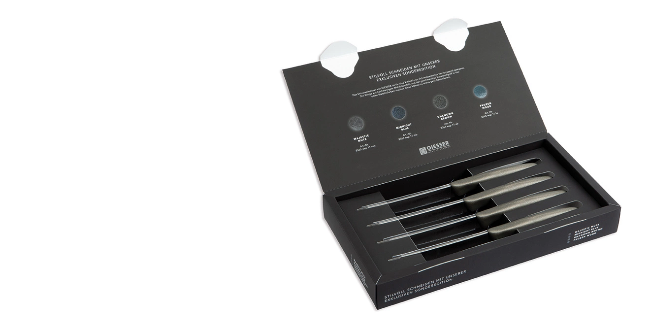 Sada nožů GIESSER MESSER je jedinečná kolekce kuchyňského náčiní vytvořená s ohledem na nejvyšší přesnost a odolnost. Každý nůž v sadě je vyroben z vysoce kvalitní chrom-molybdenové oceli kalené na tvrdost 56 stupňů Rockwellovy stupnice (+/- 1 stupeň), což zaručuje jejich výjimečnou ostrost a dlouhou životnost. Díky ručnímu napínání jsou čepele dokonale nabroušené, což usnadňuje jejich používání při každodenní kuchyňské práci.