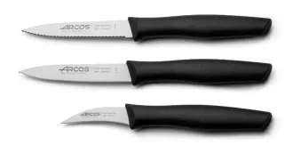Sada loupacích nožů ze série NOVA od společnosti Arcos je pečlivě vybraná, vysoce funkční sada, která obsahuje tři přesné nože ideální pro každodenní použití v kuchyni. Tyto nože jsou vyrobeny z inovativní nerezové oceli NITRUM® a vyznačují se vysokou tvrdostí a odolností proti korozi pro dlouhou životnost. Díky lehké konstrukci a ergonomickému designu se pohodlně používají a zajišťují přesné řezy.