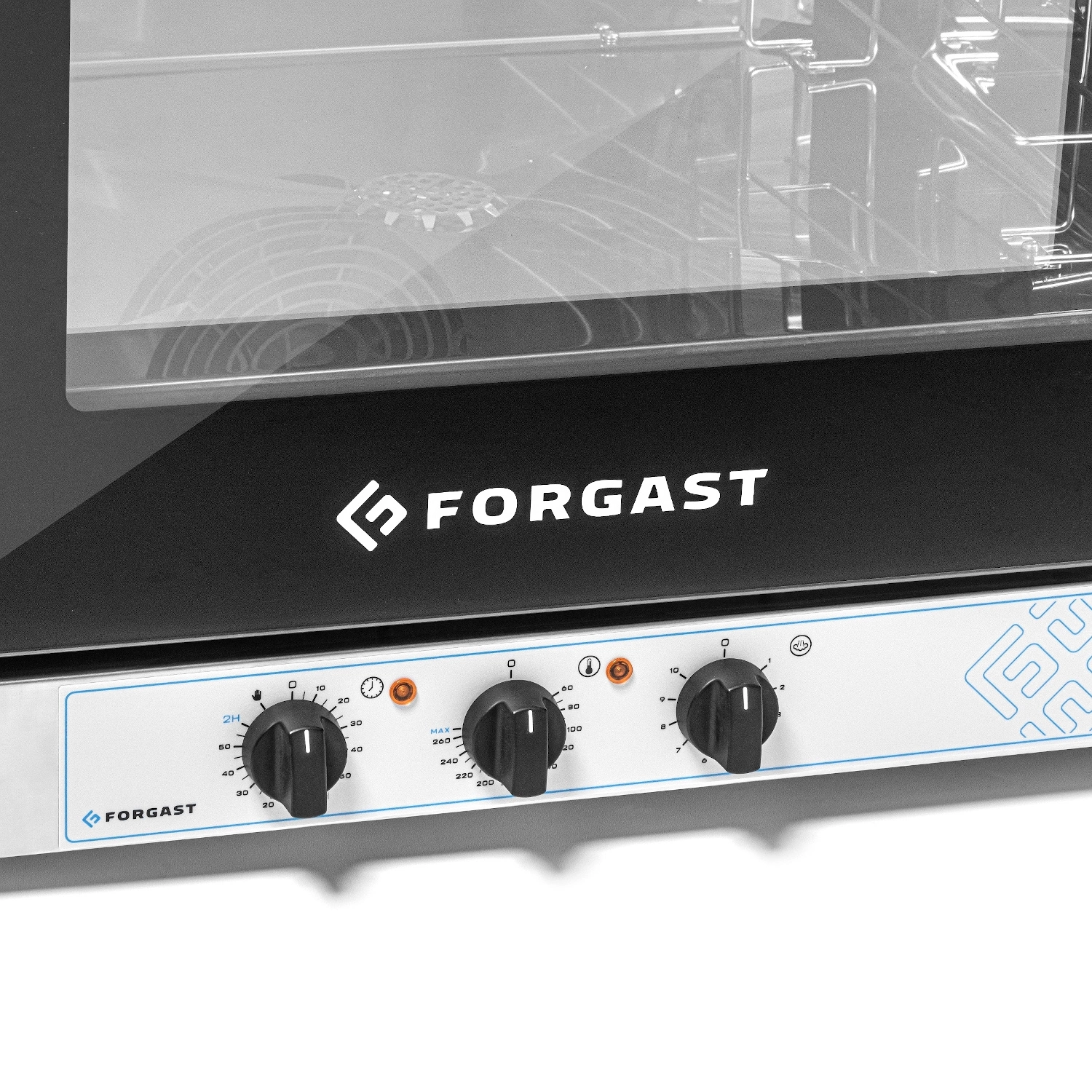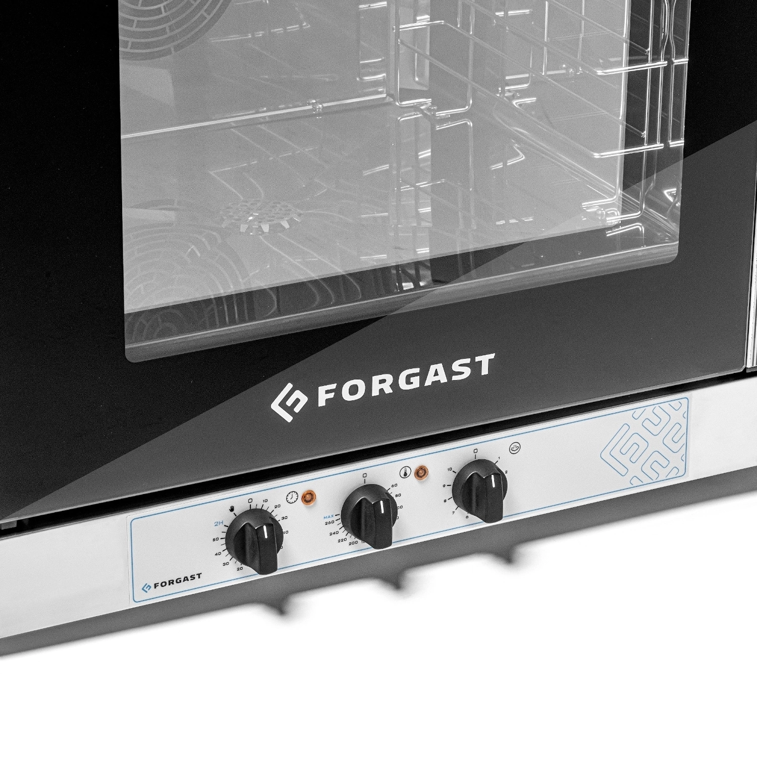 Elektrická konvekčně-parní trouba FORGAST FG09522 je ideální volbou pro profesionály, kteří očekávají spolehlivost, univerzálnost a vysokou kvalitu připravovaných pokrmů. Pevná konstrukce, intuitivní ovládání a pokročilé funkce zajišťují, že zařízení splní očekávání i těch nejnáročnějších kuchyní, pekáren a cukráren. Je to investice, která umožní zvýšit efektivitu práce, zlepšit kvalitu podávaných jídel a zajistit pohodlí každodenní obsluhy.
