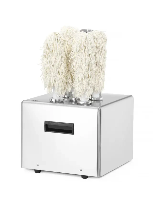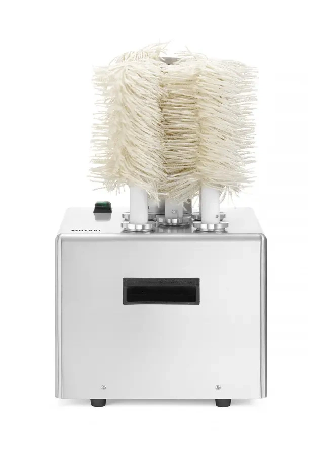 Leštička skla HENDI je spolehlivý nástroj pro profesionální gastronomická zařízení, který zajišťuje vynikající leštění a sušení sklenic, zejména po mytí v myčce. Díky pěti vyměnitelným kartáčům z mikrovlákna přístroj účinně odstraňuje všechny stopy vody a zároveň leští sklo zvenku i zevnitř. Leštička dokáže vyleštit až 330 sklenic za hodinu, takže je ideální pro velké restaurace, hotely a bary.