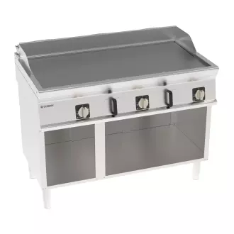 Elektrická grilovací deska, hladký povrch, chromovaná, kartáčovaná, na otevřeném podstavci, 120 cm, 400V Tecno74