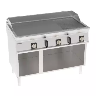 Elektrická grilovací deska, 2/3 hladká, 1/3 vlnitá, chromovaná, kartáčovaná, na otevřeném podstavci, 120 cm, 400V Tecno74
