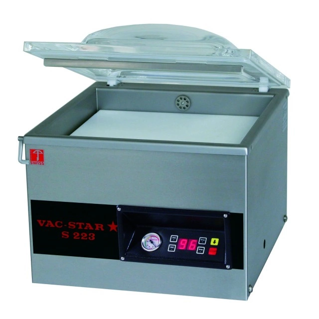 Stolní vakuový balicí stroj S-223 DBV od společnosti VAC-STAR je oblíbený stroj určený pro gastronomii, ideální pro vakuové balení potravin. Díky své robustní konstrukci a spolehlivému výkonu je ideální pro restaurace, catering a další stravovací zařízení.