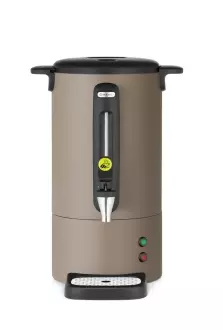 Kávovar značky HENDI je elegantní a funkční kousek, který se skvěle hodí do každého moderního bufetu nebo baru. Navrhl jej renomovaný nizozemský designér Robert Bronwasser a vyznačuje se nadčasovým designem a robustní konstrukcí z nerezové oceli, takže je stylovým i praktickým doplňkem každého prostoru pro servírování kávy. Přístroj je vybaven nekapajícím kohoutkem a magneticky připevněnou odkapávací miskou, díky čemuž se při servírování nápojů snadno udržuje v čistotě. Skleněný ukazatel hladiny tekutiny umožňuje sledovat množství zbývající kávy a automatický režim udržování teploty zajišťuje, že je vždy připraven k servírování. Kávovar je vybaven filtračním košem, který pojme hrubě mletou kávu bez nutnosti použití dalších filtrů, což zajišťuje jednoduchost a pohodlí.