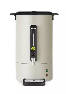 Kávovar značky HENDI je elegantní a funkční kousek, který se skvěle hodí do každého moderního bufetu nebo baru. Navrhl jej renomovaný nizozemský designér Robert Bronwasser a vyznačuje se nadčasovým designem a robustní konstrukcí z nerezové oceli, takže je stylovým i praktickým doplňkem každého prostoru pro servírování kávy. Přístroj je vybaven nekapajícím kohoutkem a magneticky připevněnou odkapávací miskou, díky čemuž se při servírování nápojů snadno udržuje v čistotě. Skleněný ukazatel hladiny tekutiny umožňuje sledovat množství zbývající kávy a automatický režim udržování teploty zajišťuje, že je vždy připraven k servírování. Kávovar je vybaven filtračním košem, který pojme hrubě mletou kávu bez nutnosti použití dalších filtrů, což zajišťuje jednoduchost a pohodlí.