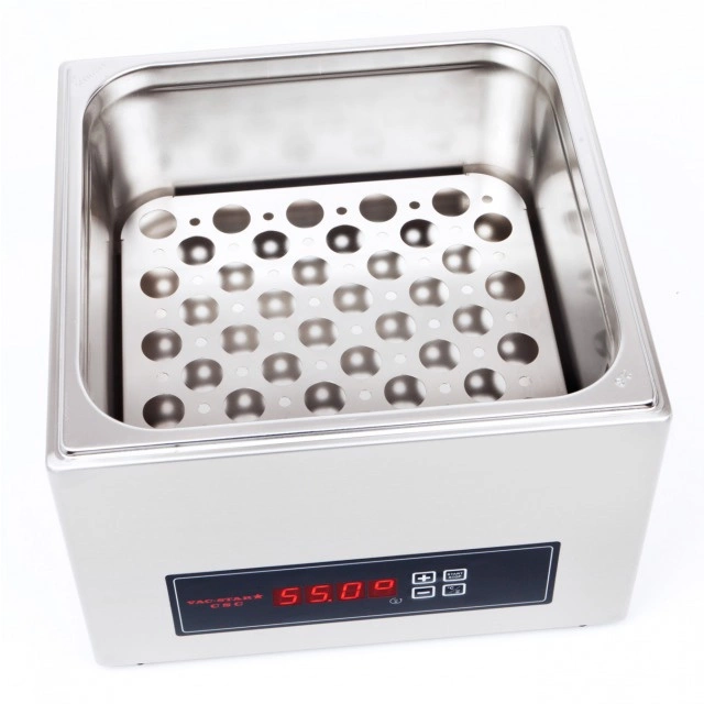 Přístroj pro vakuové vaření Sous Vide CSC-09CSC-09 je profesionální a moderní přístroj švýcarské společnosti Vac-Star, určené k vaření ve vakuu metodou sous vide. Přístroj je vyroben výhradně z vysoce kvalitní nerezové oceli a poskytuje přesnou regulaci teploty díky digitálnímu ovládání a PID regulátoru teploty, který zaručuje přesnost teploty s přesností na 0,2 °C. Přístroj má objem 9 litrů, takže je ideální pro profesionální použití v restauracích, hotelech a stravovacích zařízeních.