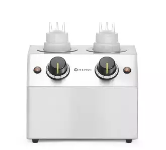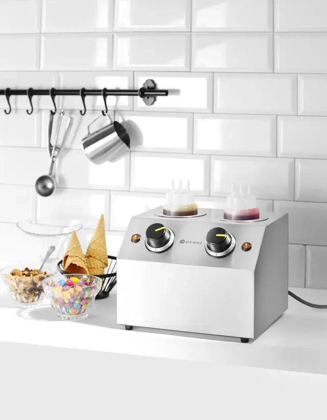 Dvojitý ohřívač omáček od HENDI je profesionální nástroj, který je ideální do každé kuchyně, zejména při servírování dezertů. Je navržen tak, aby udržoval omáčky teplé, umožňuje přesné dávkování a udržuje stejnoměrnou konzistenci. Díky nastavitelné teplotě od 30 do 65 °C umožňuje upravit hustotu omáčky podle individuálních potřeb. Plášť ohřívače je vyroben z odolné nerezové oceli, která zaručuje dlouhodobé používání. Spotřebič je vybaven šestistupňovým knoflíkem pro regulaci teploty a světelnou kontrolkou, která signalizuje průběh ohřevu. Součástí balení jsou dvě lahve LDPE o objemu 650 ml, které jsou dokonale přizpůsobeny ohřívači.