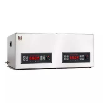 Přístroj podporuje široký rozsah teplot od 25 do 99 °C s přesností +/- 0,1 °C, což umožňuje přesné vaření sous-vide. Vestavěný odtok vody a ochrana proti chodu nasucho zajišťují uživatelský komfort a dlouhou životnost. Dva nezávislé zásobníky GN 1/1, každý o objemu 20 litrů, umožňují vařit velké množství potravin současně.
