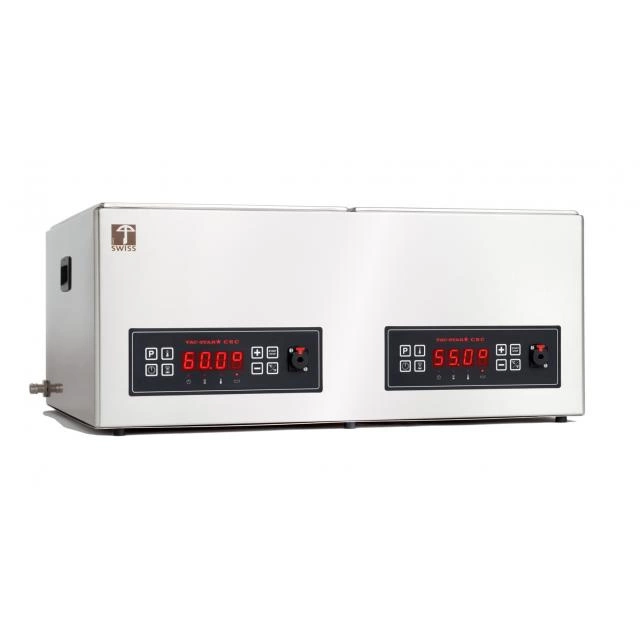 Varná jednotka sous-vide Vac-Star CSC-20/2 CT je zdokonalenou verzí modelu CSC-20/2, která je navíc vybavena teplotní sondou v jádře, třístupňovým ovládáním programů, pamětí a časovačem. Tento přístroj je určen pro profesionální gastronomii a umožňuje přesné tepelné zpracování potravin ve velkém množství při zachování ideální kvality a šťavnatosti surovin.