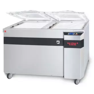 Dvoukomorový vakuový balicí stroj S 225 DK SX V/B40 od švýcarské společnosti VAC-STAR je moderní stroj určený pro profesionální kuchyně a průmyslové provozy, který díky inovativnímu řídicímu systému SX poskytuje výjimečný balicí výkon a přesnost. Tato posuvná jednotka umožňuje balení velkých porcí výrobků - až 10 kg v každé komoře, přičemž díky dvěma pracovním komorám nabízí dvojnásobnou kapacitu.