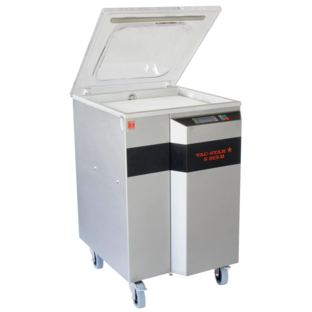 Mobilní vakuový balicí stroj s 1 komorou S-225 M SX V/B20 by VAC-STAR je stroj profesionální kvality určený pro střední a menší gastronomické podniky, které hledají výkonnou a přesnou technologii vakuového balení za příznivou cenu. Tento model je optimalizován pro každodenní použití a poskytuje vynikající výsledky balení při kompaktních rozměrech a snadné obsluze.