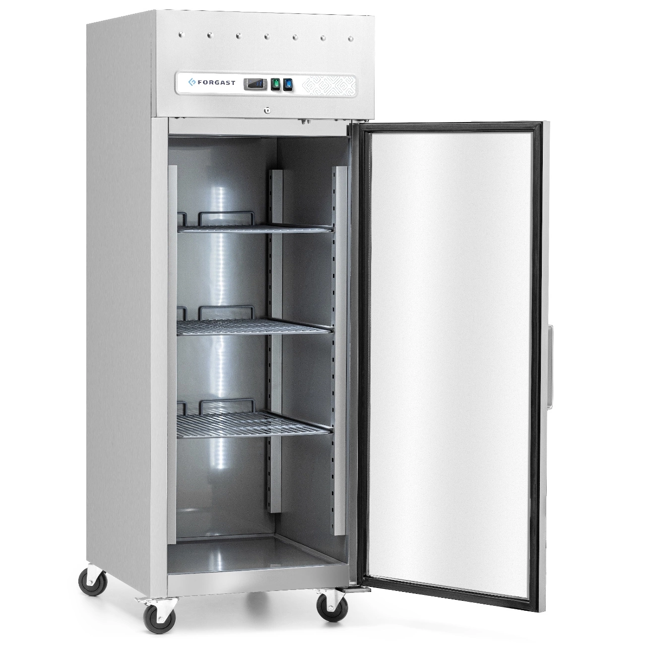 Chladicí skříň FORGAST FG07174 je spolehlivým řešením pro profesionály, kteří očekávají odolnost, pohodlí při používání a vysokou estetiku prezentace produktů. Díky velké kapacitě, pevné konstrukci z nerezové oceli a moderním technologickým řešením splní zařízení očekávání i těch nejnáročnějších uživatelů. Bezpečnost, efektivita chlazení a ekologické chladivo R290 z něj činí investici na mnoho let, která zaručuje komfort práce a čerstvost skladovaných produktů.