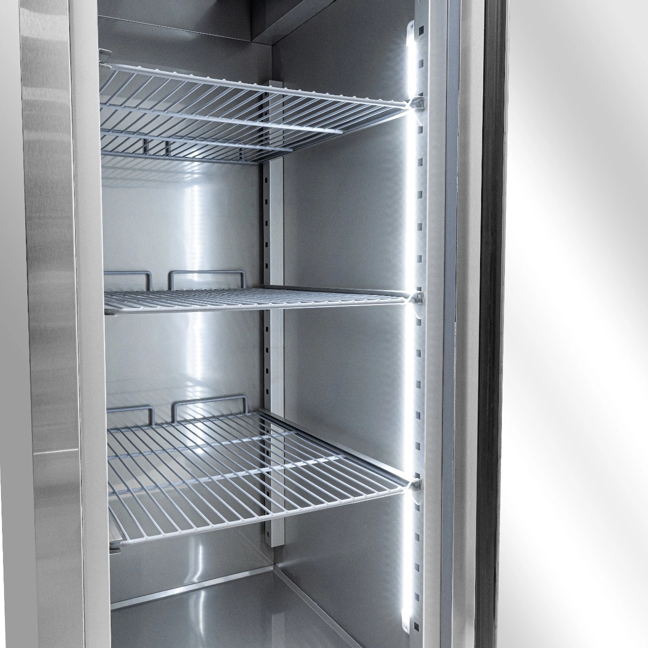Skříň byla navržena s ohledem na odolnost a spolehlivost – jak vnitřek, tak plášť jsou vyrobeny z kvalitní nerezové oceli, která se osvědčuje v profesionálních kuchyních a potravinářských obchodech. Díky celkovému objemu 685 litrů umožňuje zařízení současné skladování velkého množství produktů, což je zvlášť důležité v provozech s vysokým pracovním zatížením, jako jsou hotelové restaurace nebo jídelny.