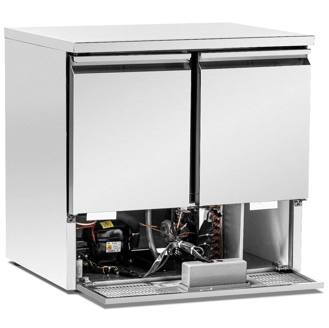 Konstrukce a využití 2-dveřového chladicího stolu z nerezové oceli s objemem 257 l