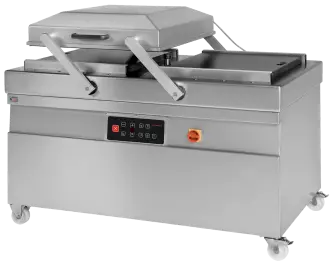 Balicí stroj je vybaven čtyřmi těsnicími tyčemi a dvěma prostornými komorami optimální velikosti, které umožňují balit více výrobků najednou. Výkonná vakuová pumpa s kapacitou 100 m³/h zajišťuje rychlé a účinné odstranění vzduchu, zatímco přesný digitální ovládací panel LED umožňuje snadné řízení procesu balení.