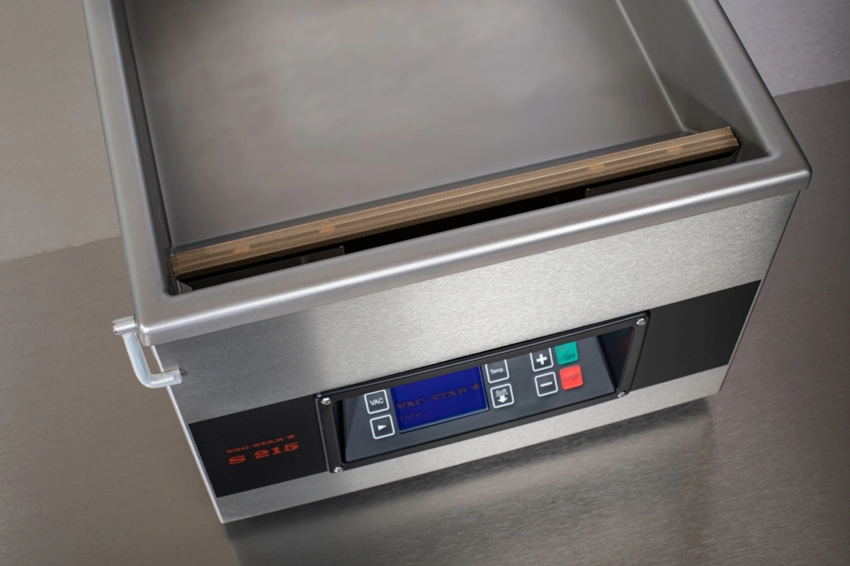 Stolní vakuový balicí stroj S-215 SX je profesionální vakuový balicí stroj, ideální pro gastronomii, potravinářské podniky, polotovary a mražené potraviny. Tento model nabízí pokročilé řídicí funkce, které zajišťují maximální efektivitu a přesnost balení.