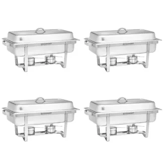 Každý ze čtyř ohřívačů v sadě je navržen s ohledem na profesionální použití, jako jsou snídaňové bufety, slavnostní akce nebo cateringové eventy. Vysoká kapacita 9 litrů umožňuje pohodlné podávání většího množství jídel, jako jsou masa, zelenina nebo těstoviny. Díky použití GN 1/1 nádob je produkt kompatibilní s většinou profesionálních kuchyní a gastronomických zařízení.