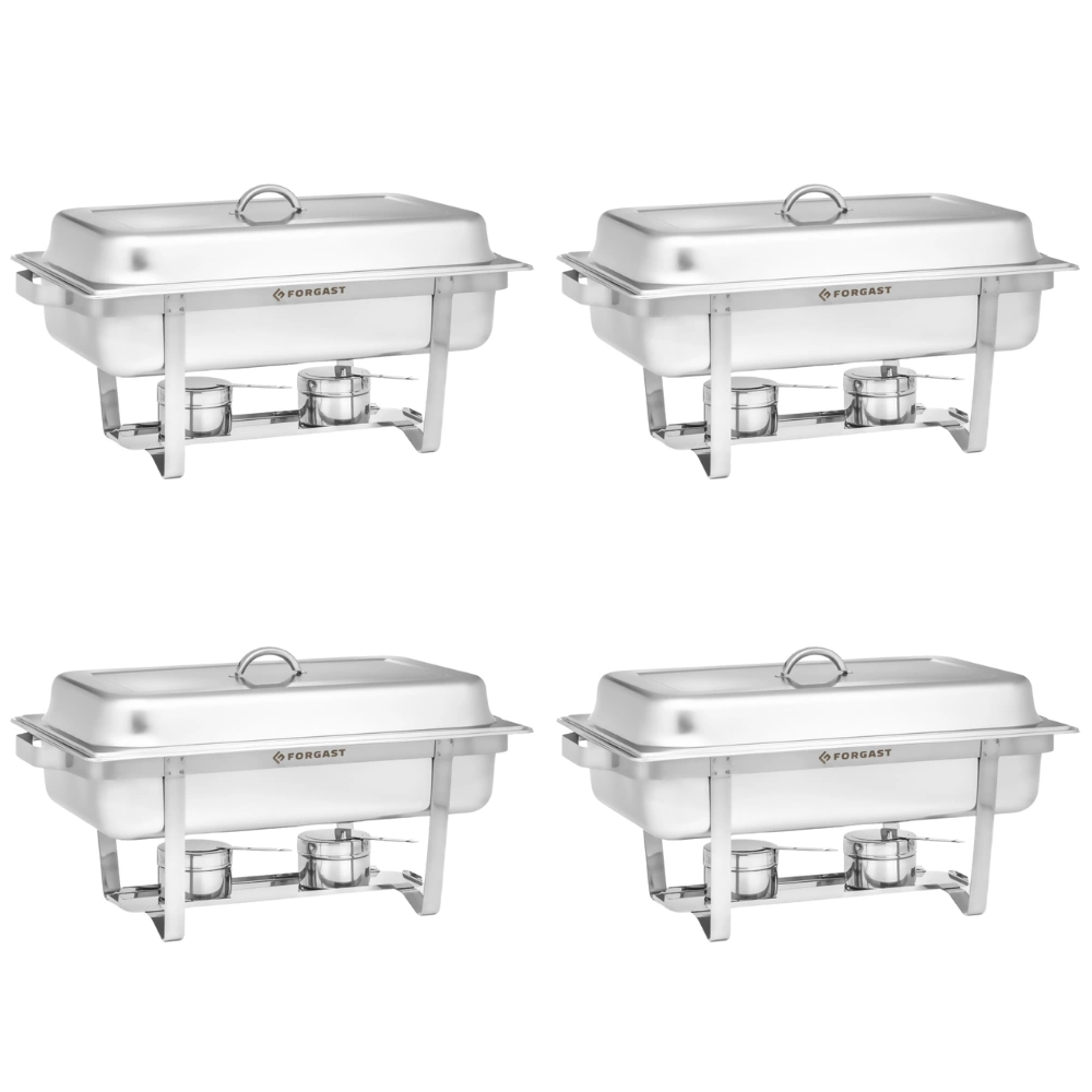 Sada ohřívačů na pokrmy GN 1/1 značky FORGAST je profesionální souprava čtyř ohřívačů určených k udržování teploty jídel při servírování. Zařízení se vyznačují mobilitou díky provozu na palivo a velkou kapacitou, což z nich činí vynikající volbu pro restaurace, catering nebo hotelové bufety.