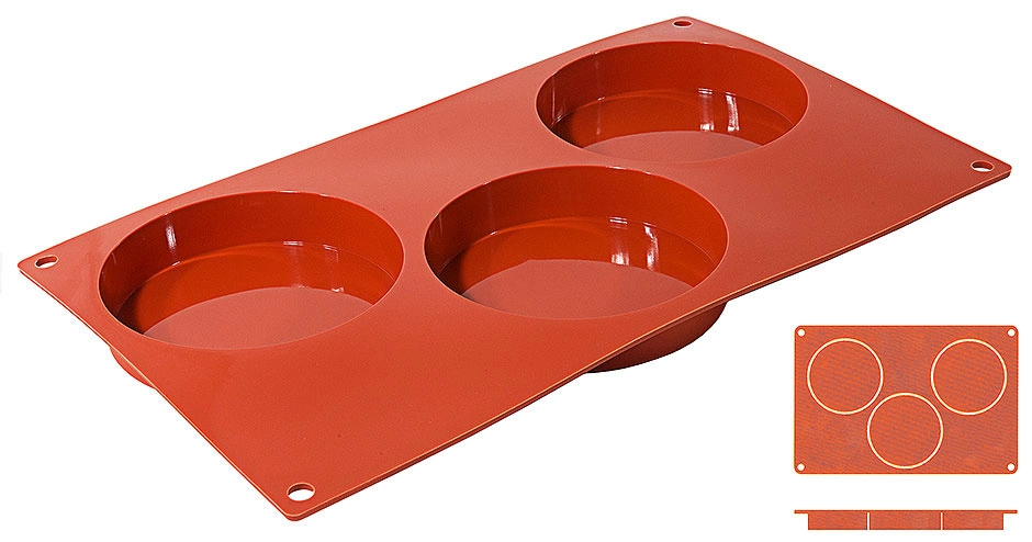 Flexibilní silikonové formy z terakoty jsou nepostradatelným nástrojem pro milovníky domácího pečení. Jsou určeny pro pečení 3 dortů o průměru 10 cm a výšce 2 cm a díky nepřilnavému povrchu zaručují rovnoměrné pečení a snadné vyjmutí dortů.