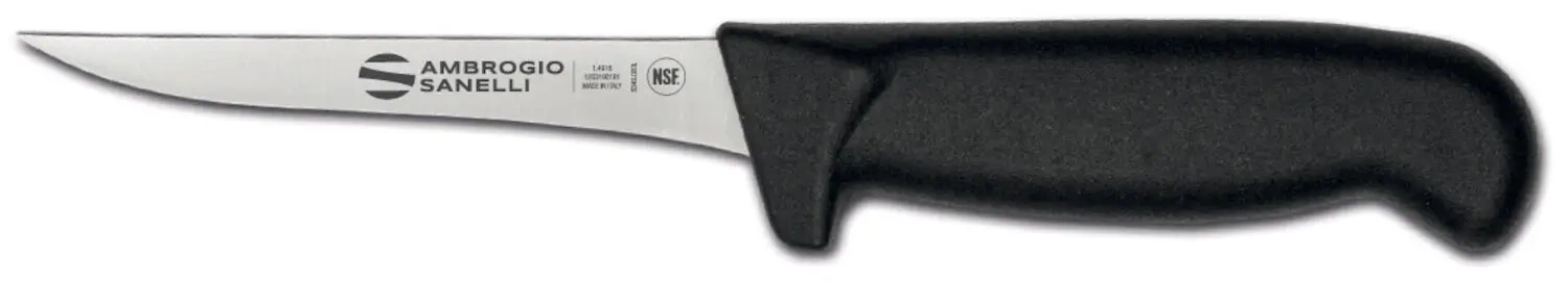 Vykosťovací nůž Supra od Ambrogio Sanelli je nepostradatelný nástroj pro profesionální kuchaře a řezníky, určený k přesnému oddělování masa od kostí. Díky svému vyspělému designu a ergonomické rukojeti splňuje nejvyšší standardy funkčnosti a odolnosti v intenzivních pracovních podmínkách.