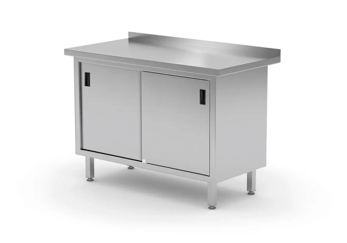 Stół przyścienny z szafką marki Hendi je nepostradatelným vybavením pro restaurace, jídelny, bary a další stravovací zařízení, kde záleží na odolnosti, funkčnosti a snadném používání. Ideální řešení pro optimalizaci prostoru v kuchyni.