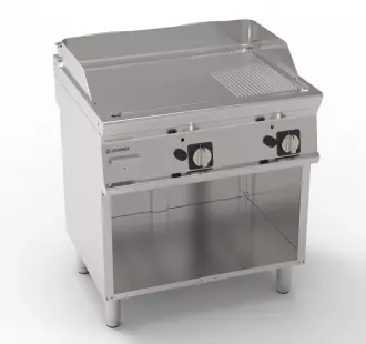 Hladká plynová grilovací deska s 1/3 drážkováním na otevřeném podstavci od společnosti Tecnoinox Řada Tecno74 je kombinací modernosti a spolehlivosti a je určena pro střední a velké restaurace a hotely. Byla vytvořena s ohledem na nejvyšší standardy kvality a nabízí nejen výjimečný výkon, ale také pozornost věnovanou detailům, které usnadňují každodenní práci v kuchyni.