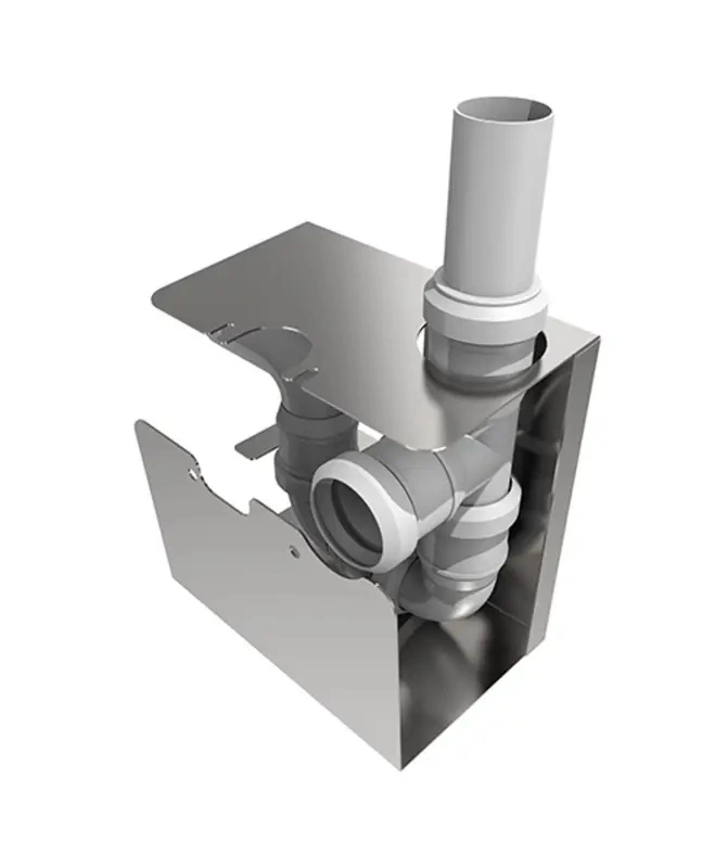 - Speciální sifon z PVC ve tvaru písmene U - obsahuje všechny potřebné součásti pro správný odtok vody a zabraňuje jejímu hromadění v okolí sporáku.