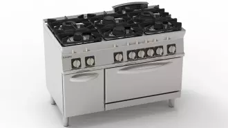 Gastronomický plynový sporák se 6 hořáky a elektrickou troubou od společnosti Tecnoinox Řada Tecno74 je kombinací modernosti a spolehlivosti a je určena pro střední a velké restaurace a hotely. Byla vytvořena s ohledem na nejvyšší standardy kvality a nabízí nejen výjimečný výkon, ale také pozornost věnovanou detailům, které usnadňují každodenní práci v kuchyni.