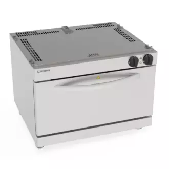 Trouba s napájením 4,7 kW vybaven 1 rošt vhodné pouze pro použití s horními díly o rozměrech 2x40 cm nebo 1x80 cm. . Komora trouby s rozměry 57,5x65x30 cm mnovinky 4 kontejnery GN 2/1. Vzdálenost mezi policemi je 6 cm. . Rozsah teplot v troubě 60-270 °C.