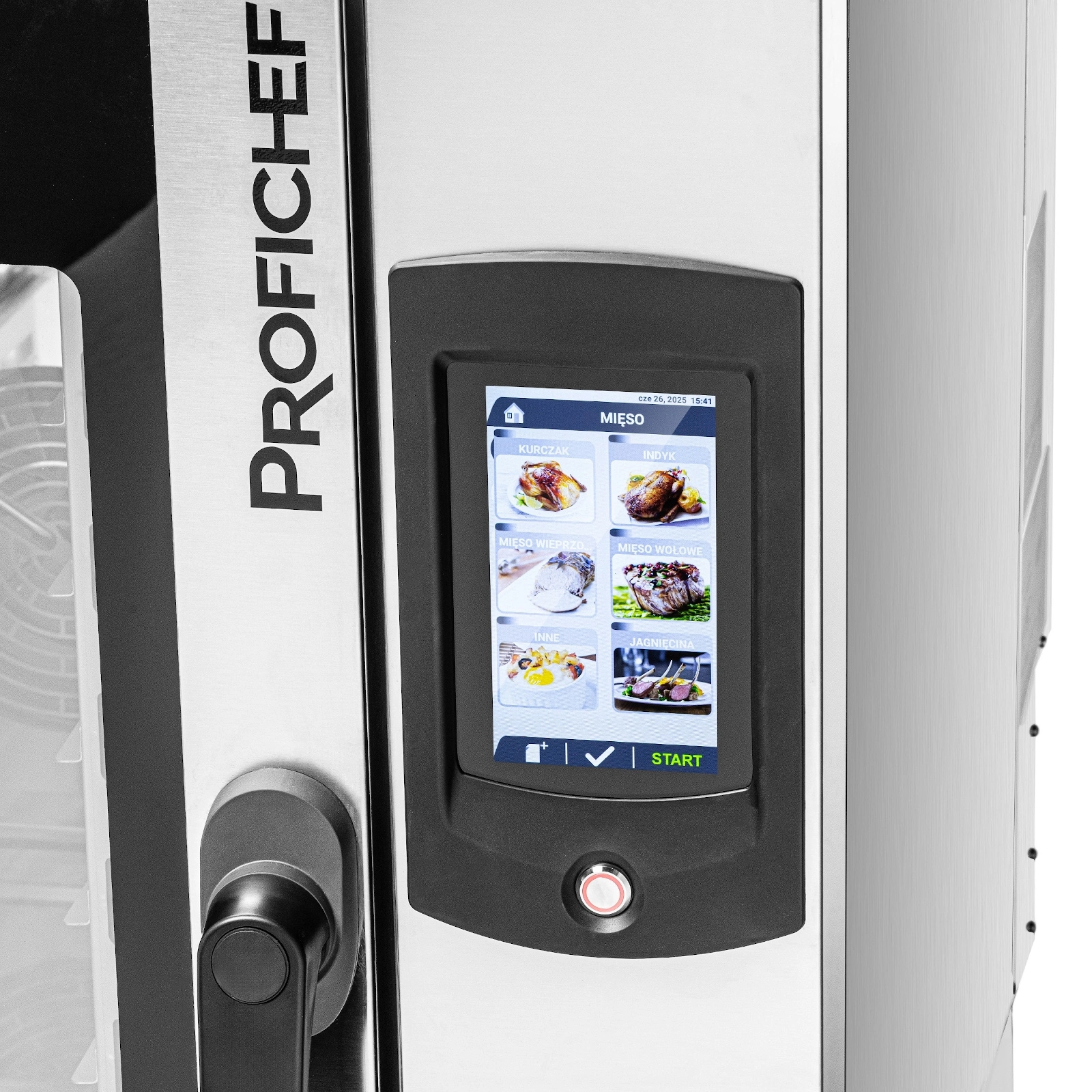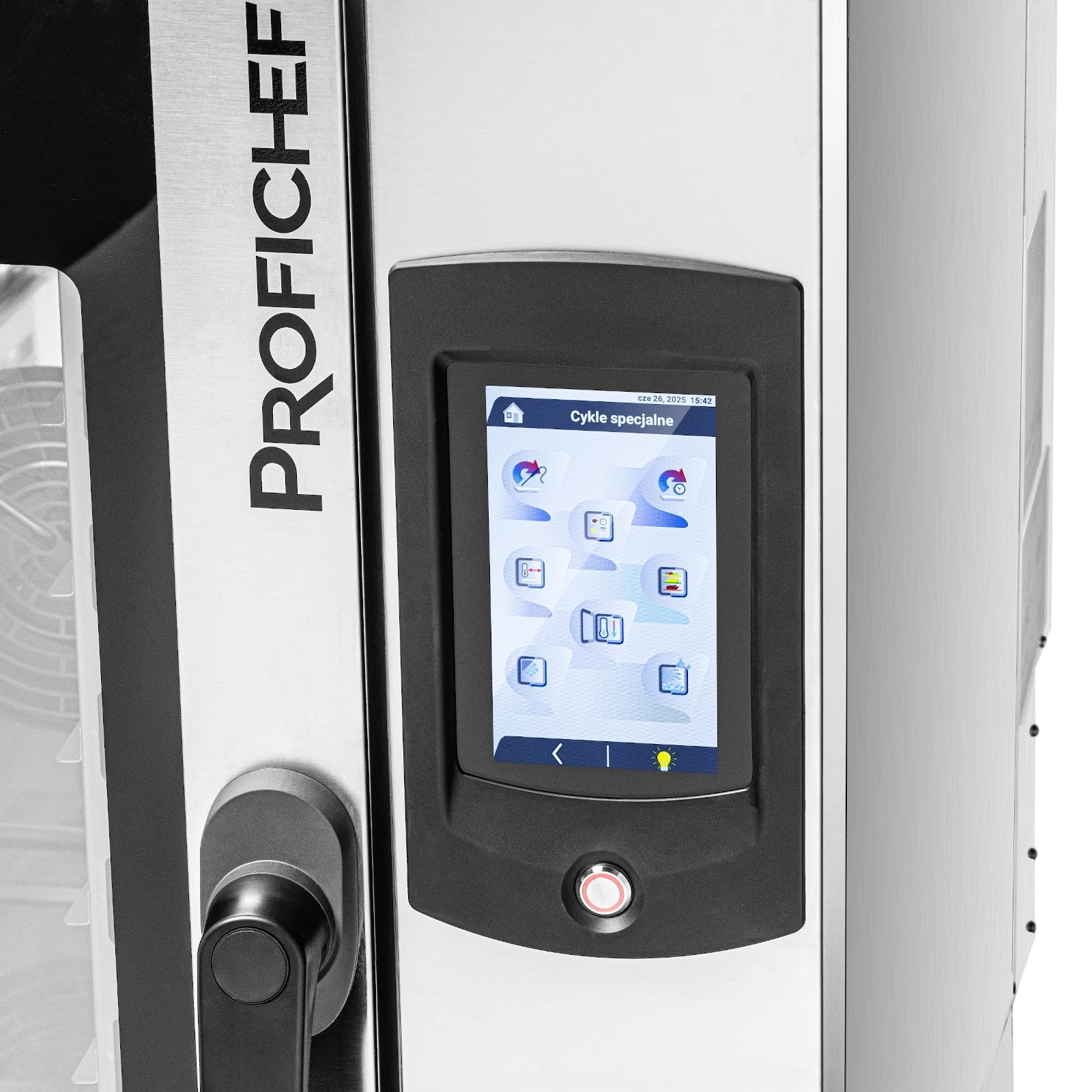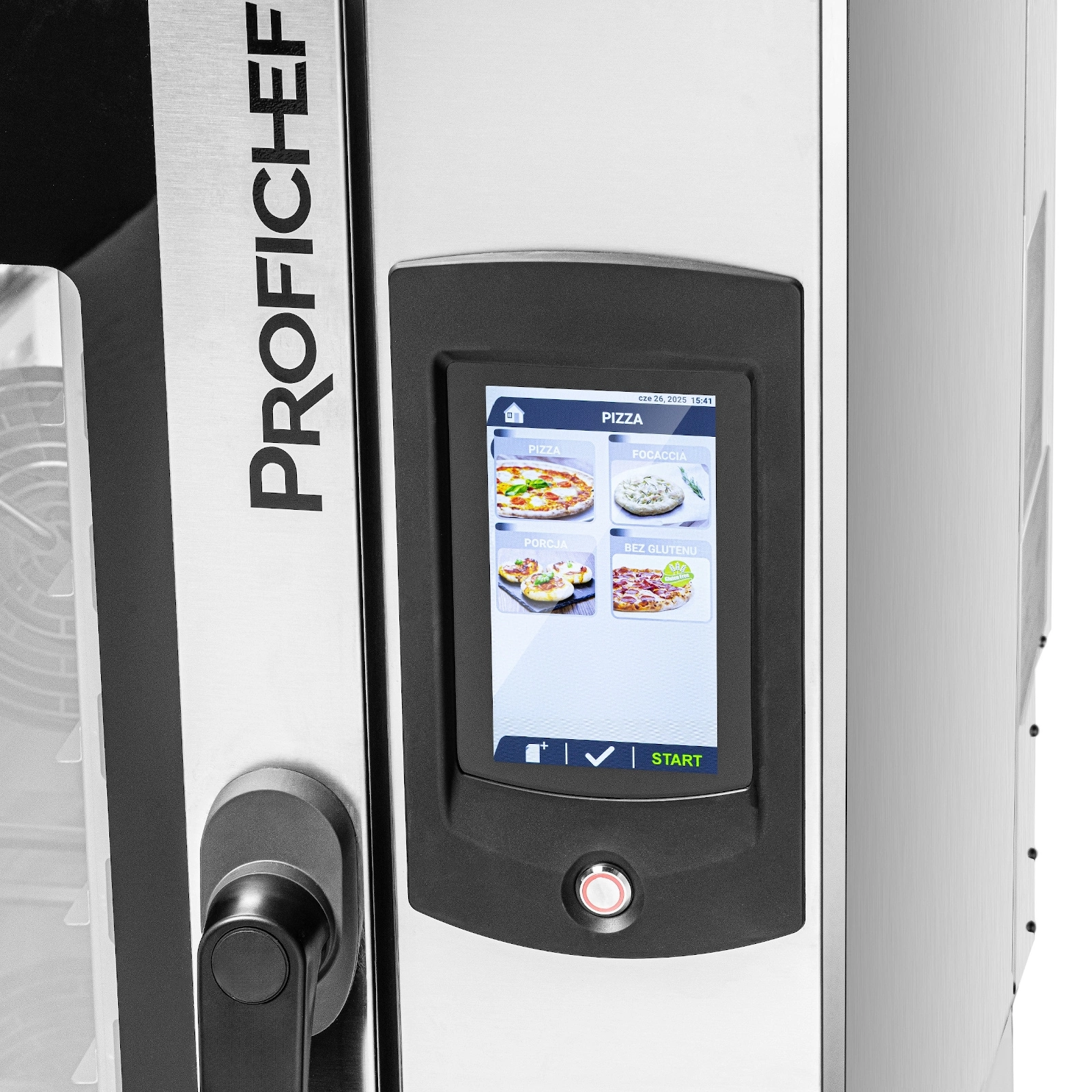 - Dotykový ovládací panel LCD – 7palcová obrazovka poskytuje rychlý přístup k hotovým i vlastním receptům a intuitivní správu pečicích programů, což výrazně usnadňuje každodenní práci kuchařů.