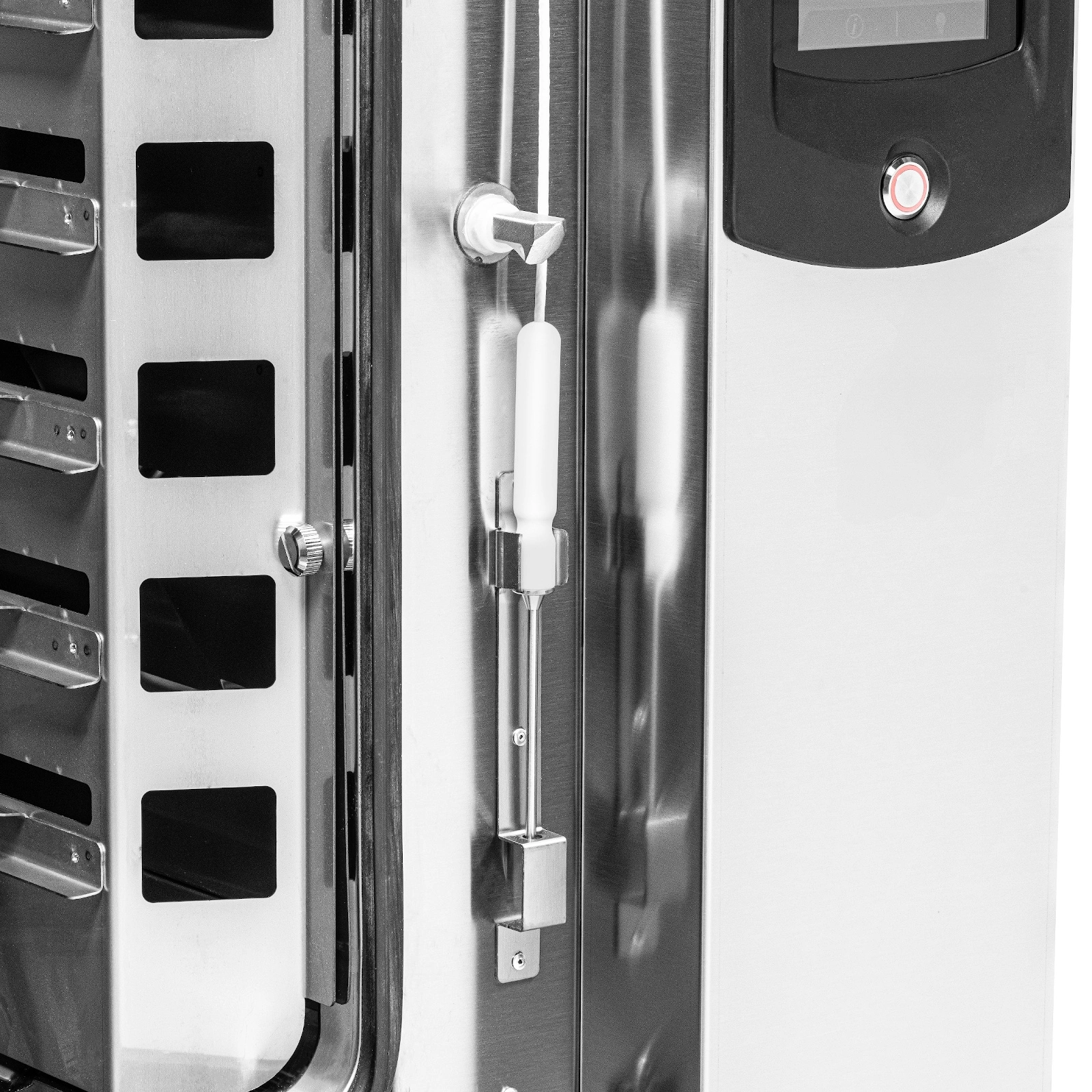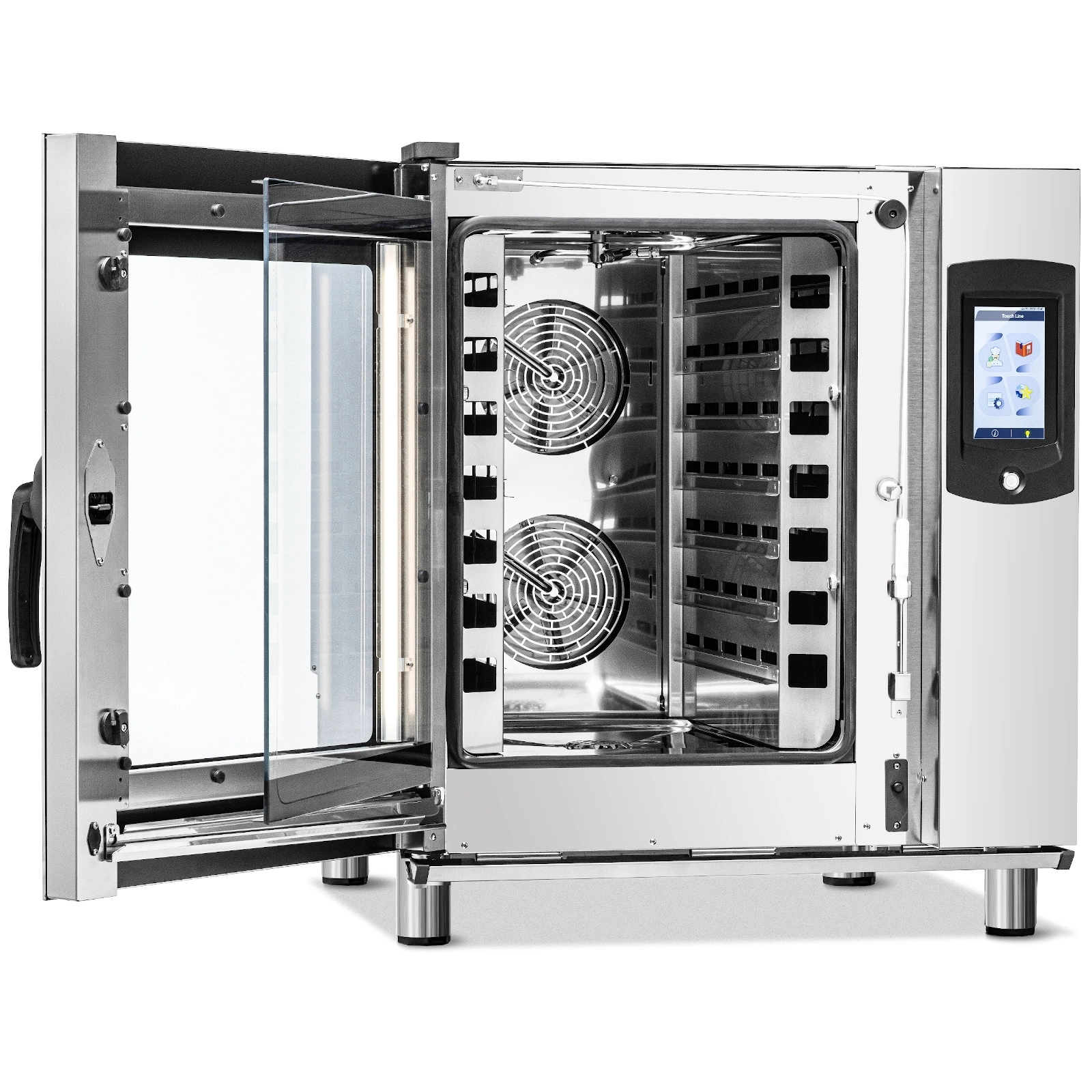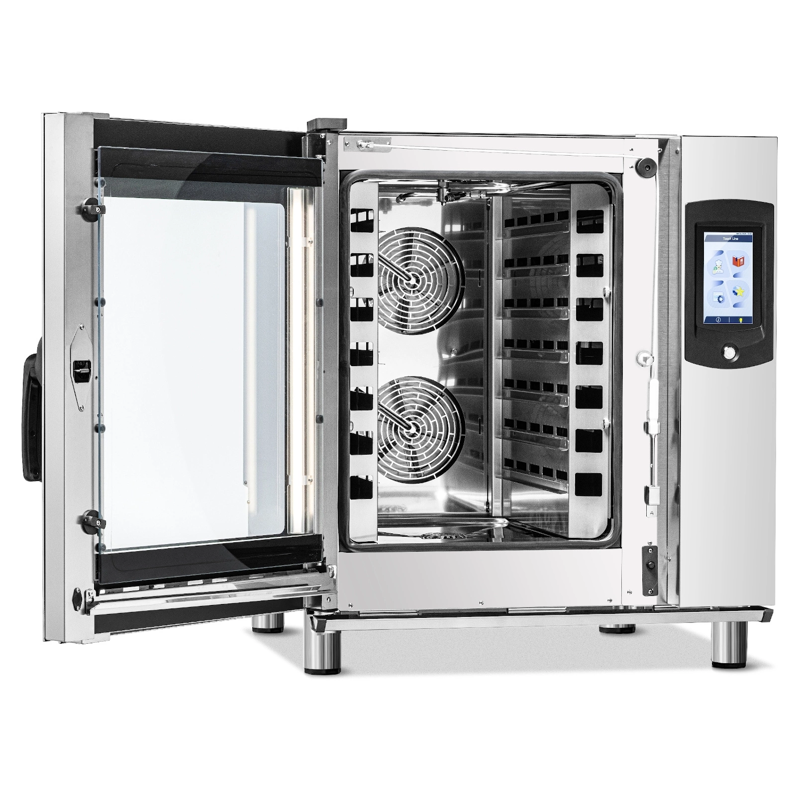 - Dotykový ovládací panel LCD – 7palcová obrazovka poskytuje rychlý přístup k hotovým i vlastním receptům a intuitivní správu pečicích programů, což výrazně usnadňuje každodenní práci kuchařů.