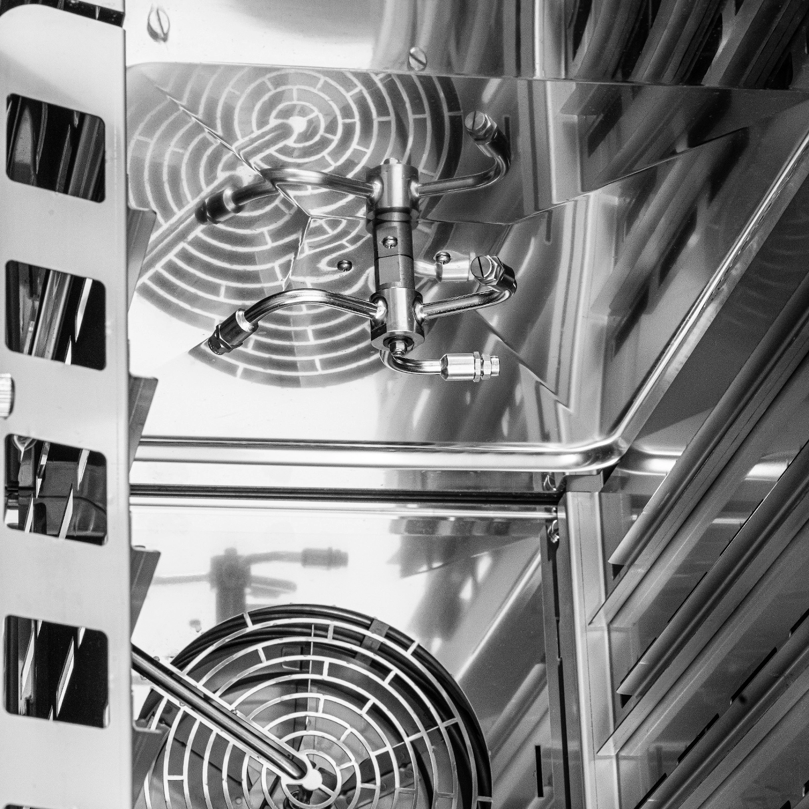 - Vytváření páry: sprchové (injekční) – umožňuje rychle dosáhnout požadované vlhkosti v komoře pece.