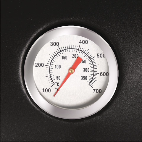 Kontrola teploty: teploměr ve víku a nezávislé ovládací knoflíky umožňují přesné nastavení teploty.