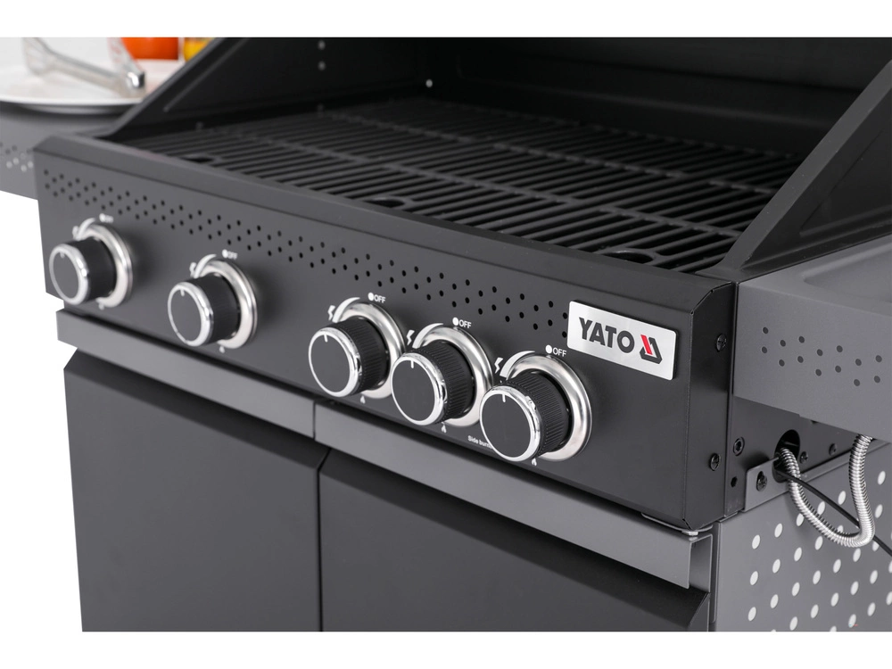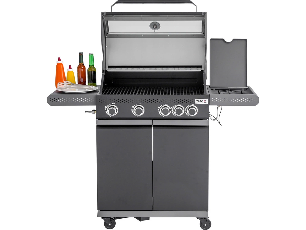 Plynový gril YATO Okaya 4+1 je elegantní a pevné zařízení, které umožňuje pohodlné a profesionální grilování. Díky vysokému výkonu, multifunkčnosti a vysoké kvalitě zpracování bude nenahraditelným prvkem vybavení každé zahrady, terasy nebo restaurace.