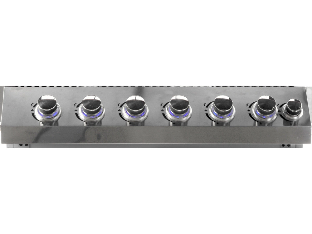 7 ovládacích knoflíků s modrým LED podsvícením usnadňuje grilování i po setmění.
