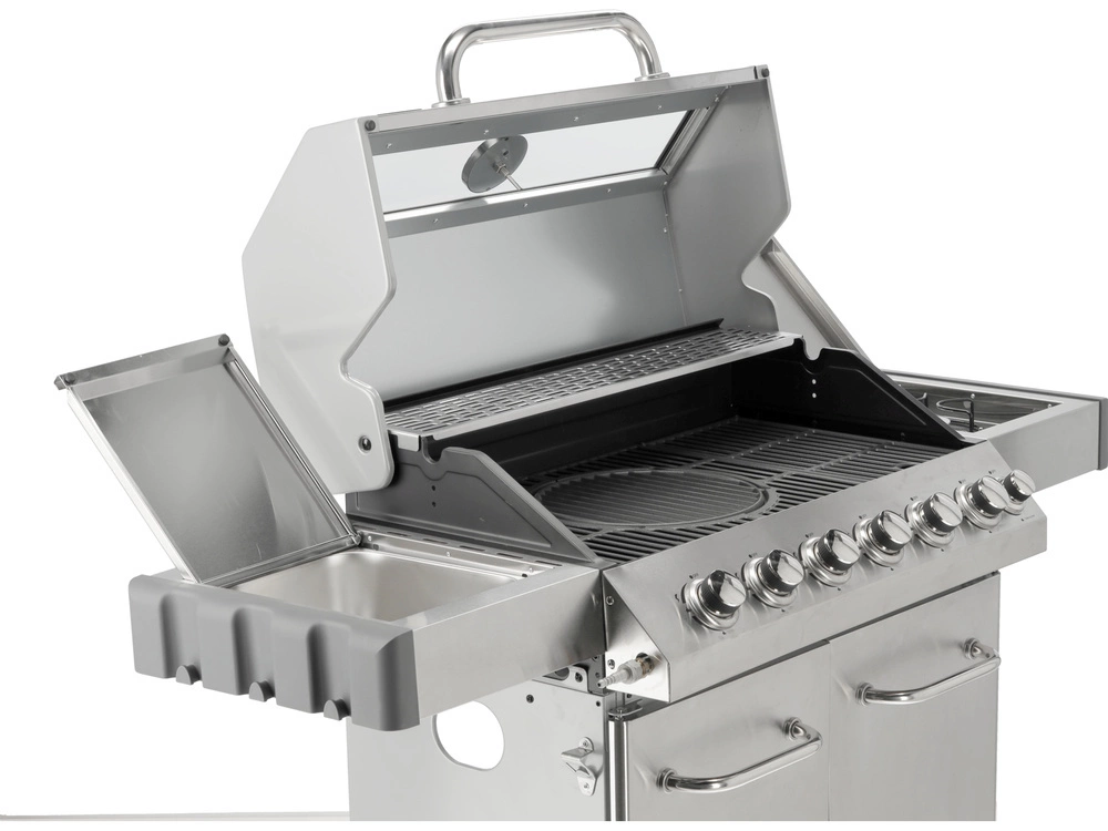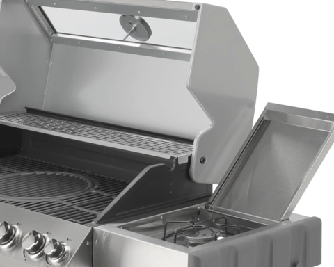 Přesná kontrola teploty: teploměr ve víku a samostatné ovládání každého hořáku umožňují perfektní nastavení teploty podle typu pokrmu.