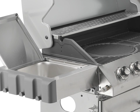 Pohodlí při používání: rychlé nahřívání, automatický zapalovač v ovladačích, snadné čištění díky výsuvné odkapávací misce a nádobě na tuk.