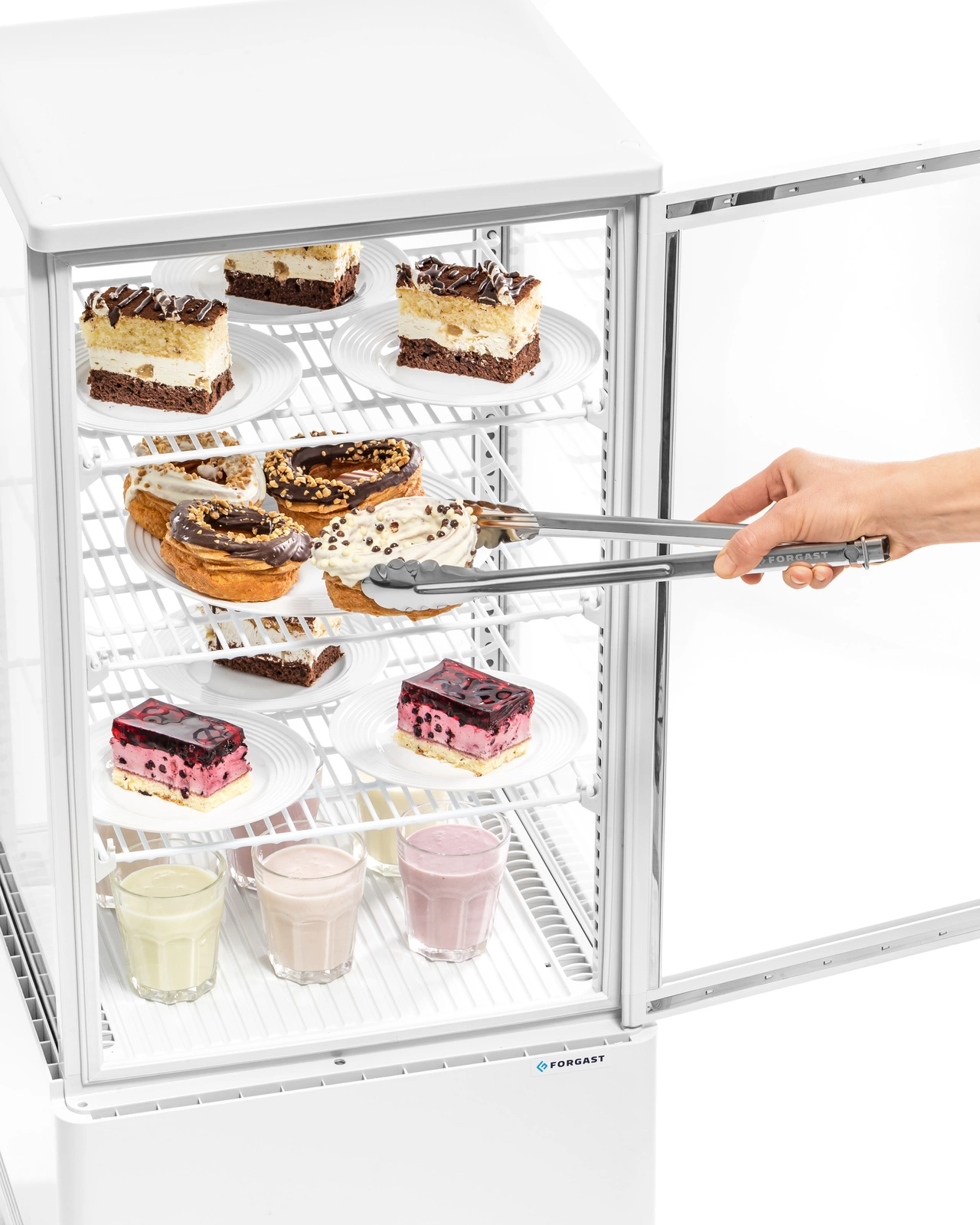 - Objem: 78 litrů – umožňuje pohodlnou prezentaci různých potravin, jako jsou dorty, dezerty, nápoje nebo sendviče.
