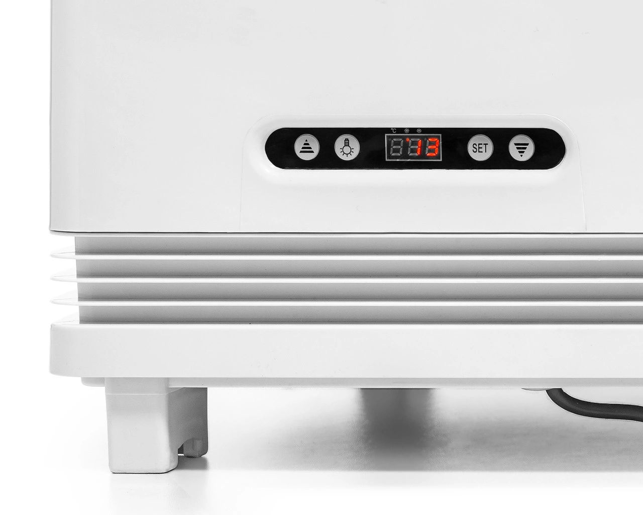 - Elektronická regulace teploty – přesný termostat a digitální displej umožňují nastavení teploty v rozsahu od 0 do 12 °C, což zaručuje čerstvost a bezpečnost uložených produktů.