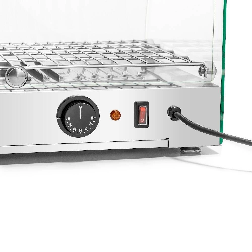 Vyhřívaná vitrína 25 l FORGAST FG09612 je moderní zařízení určené pro profesionální gastronomické provozy. Vyznačuje se kompaktní konstrukcí, zaobleným čelním sklem a přesnou regulací teploty. Skvěle se hodí do cukráren, na čerpací stanice i do prodejních míst, kde je důležitá estetická prezentace a udržení správné teploty pokrmů.