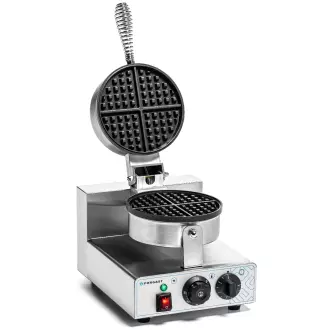 Profesionální elektrická vaflovačka určená pro pečení kulatých belgických vaflí. Zařízení se vyznačuje robustní konstrukcí z nerezové oceli a hliníkovými deskami potaženými teflonem. Široký rozsah teplot a vestavěný časovač zajišťují, že se skvěle hodí jak do restaurací, kaváren, tak i do gastronomických provozů nabízejících rychlé občerstvení s sebou.