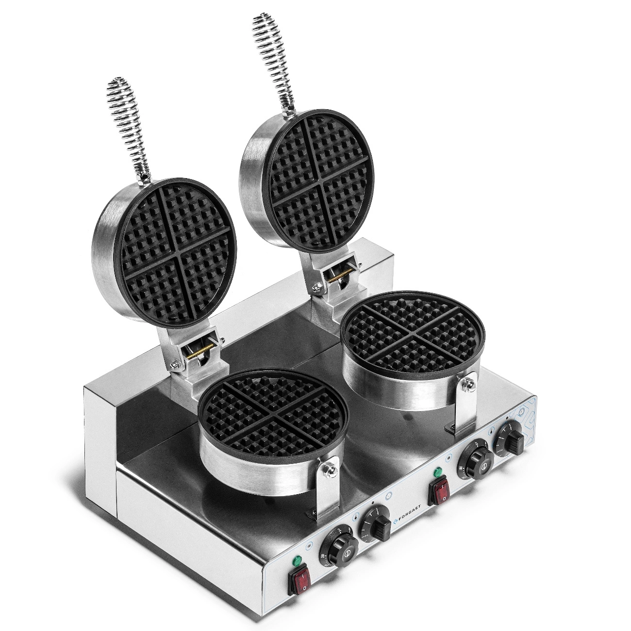 Dvojitý elektrický vaflovač na belgické vafle, průměr 18,5 cm, 4 kW, 230 V