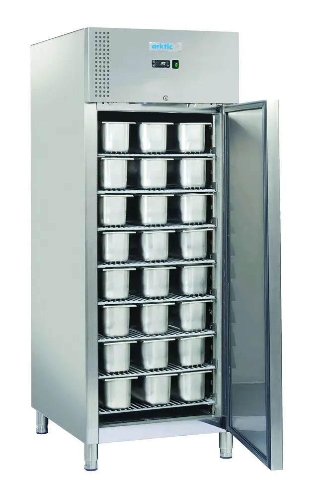 Mrazicí skříň z řady Profi Line od společnosti HendiTento jednodveřový model o objemu 440 litrů má vnitřní a vnější plášť z vysoce kvalitní nerezové oceli (zadní vnější stěna je z pozinkované oceli). Výrobky Hendi se vyznačují vysokou kvalitou a univerzálností; představený model se doporučuje pro použití v profesionálních kuchyních a malých gastronomických zařízeních.
