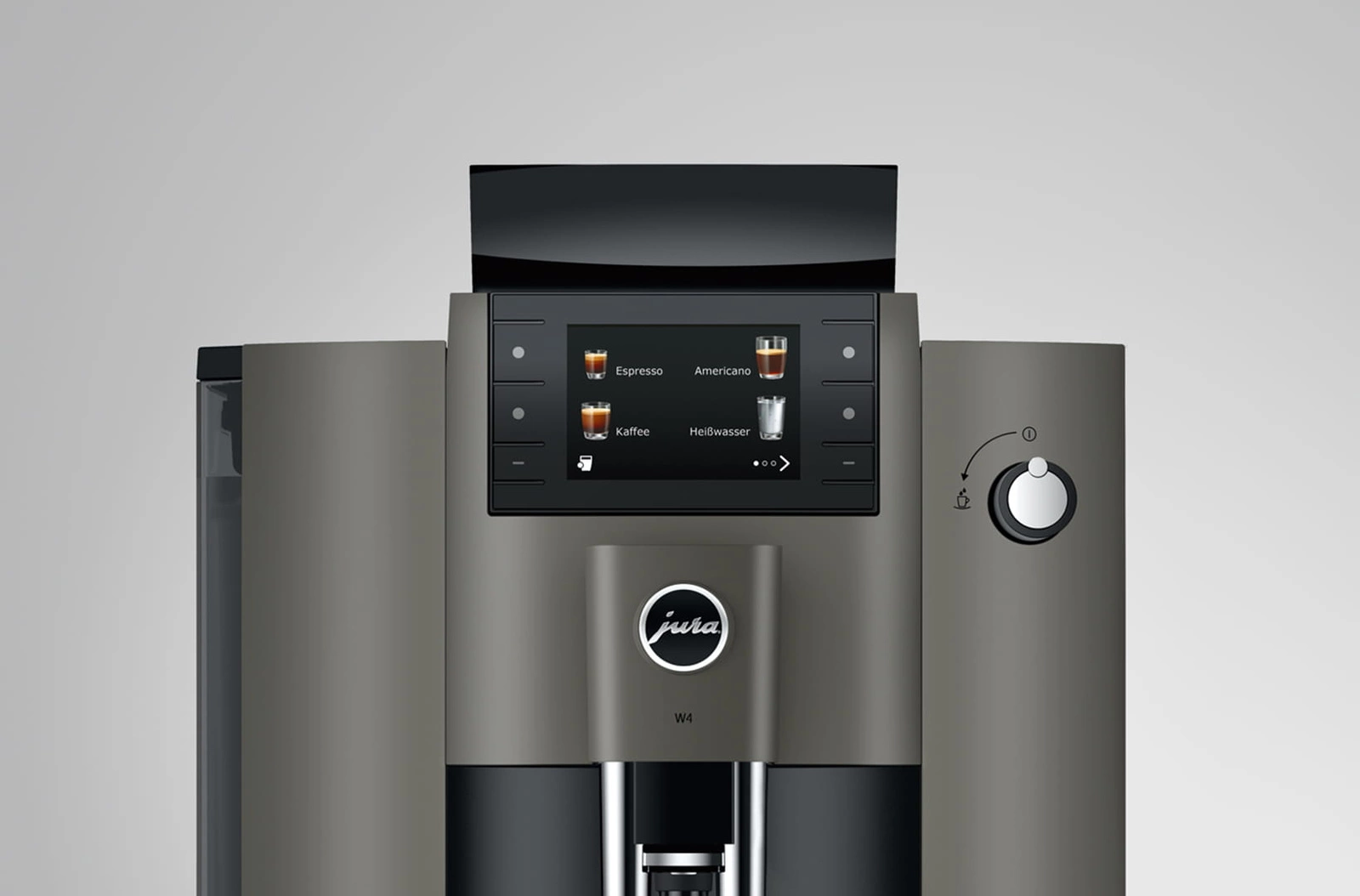 JURA W4 je plně automatický profesionální kávovar určený pro firemní prostředí, kde je klíčová spolehlivost, snadné použití a vynikající chuť kávy. Jeho kompaktní rozměry a osobitý design z něj činí ideální volbu pro kanceláře, studia, dílny a servisní provozovny.
